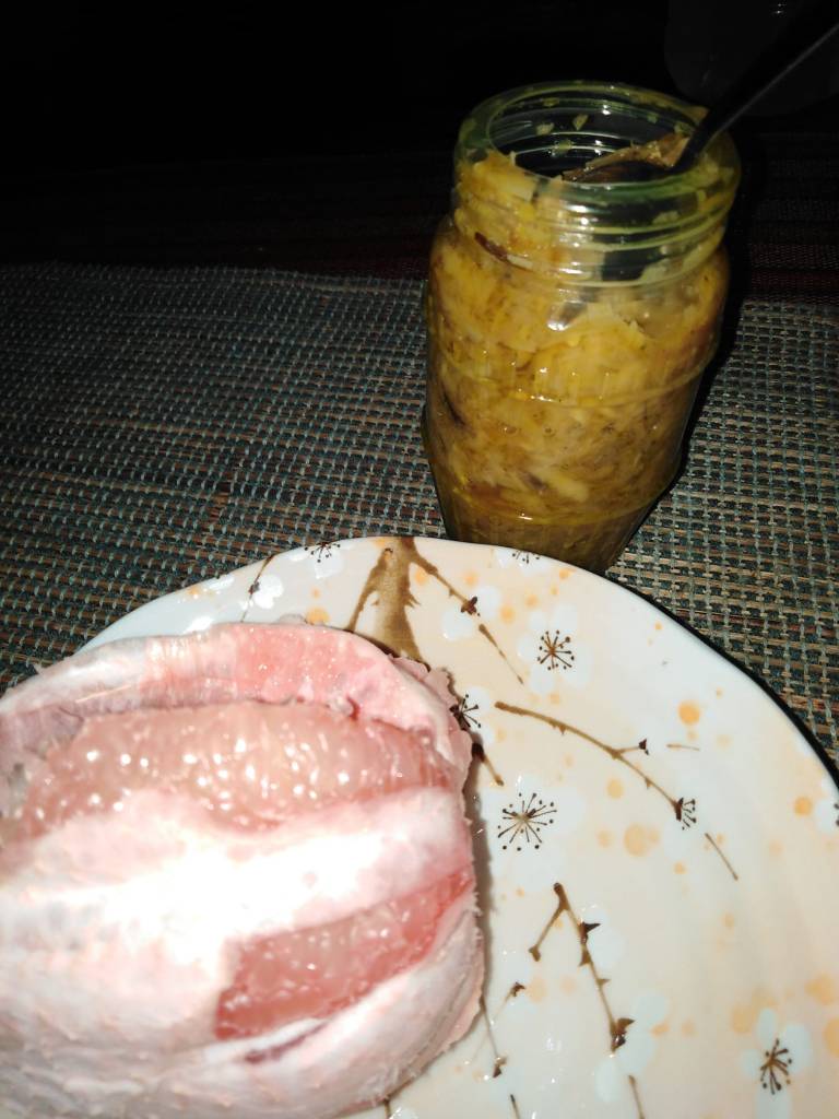 So, we exited Claveria gate to get my ID, rode a taxi. Karlo instructed the driver to bring us to Boulevard a few steps from Luz Kinilaw. Karlo brought me to Antimovina. According to Karlo, Antimovina serves Maranao food. I ordered Bakasi, Cebuano for eel. He also ordered the same food. Bakasi was cooked with coconut oil, turmeric, and spices. The lady served us two cups of rice each. At the back of my mind, I did not order two cups of rice. But I kept silent. I ordered a liter of Pepsi. Then, Karlo took a small container on top of the glass where the food for sale were displayed. He told me the contents of that container is called Palapa. I later learned that Bakasi was also cooked with Palapa. I should try it, Karlo said. So, I tried palapa. It looked like garlic skin. But unlike the garlic skin, this one is edible and easy to chew. A salty taste and a little hot. The garlic skin-looking was Sakurab, a scallion indigenous to Mindanao. But I liked the taste. He suggested I ordered another bottle to bring to my wife. Rebecca recommended Karlo for a short story festival in Thailand or something. He said, palapa is in his story so, Rebecca should taste it. So, I bought a bottle for a hundred pesos.